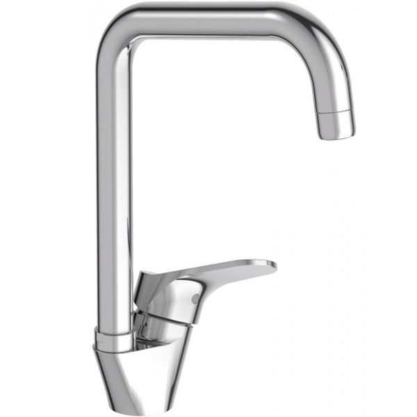 Однорычажный смеситель с поворотным изливом, монтируемый в одно отверстие, отлично подходит для различных интерьеров кухни в современном стиле.
