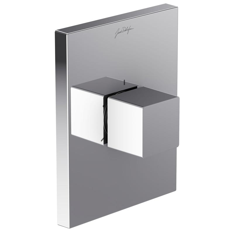 Встраиваемый переключатель потоков Якоб Делафон Модуло изготовлен из латуни и имеет покрытие хром. Лицевая панель современного квадратного дизайна. Крепится к стене.