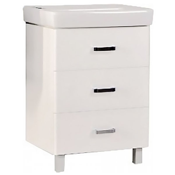 Тумба под раковину Акватон Америна 60 М 1A168901AM950 с тремя выдвижными ящиками и изящными глянцевыми опорами.
