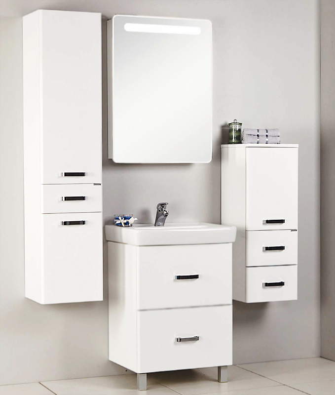 Тумба под раковину Акватон Америна 60 Н 1A169201AM430 с изящными глянцевыми опорами, с двумя внешними ящиками, и одним скрытым встроенным ящиком за верхним. Внешние ящики установлены на направляющие нижнего крепежа, обеспечивающие жесткое и надежное крепление и плавный ход. В направляющие встроены доводчики. Дополнительно организовано нижнее подключение труб водоснабжения и канализации. Корпус выполнен из ДСП с ламинированным покрытием, обладает повышенной влагостойкостью и сопротивляемостью износу, не выделяет вредных испарений, хорошо выдерживает воздействие бытовых химических средств, за исключением абразивных материалов и едких веществ и жидкостей. Фасадные детали изготавливаются из МДФ с пятислойной покраской.
