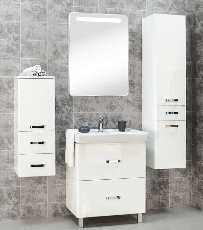 Тумба под раковину Акватон Америна 70 Н 1A169301AM010 с изящными глянцевыми опорами, с двумя внешними ящиками, и одним скрытым встроенным ящиком за верхним. Внешние ящики установлены на направляющие нижнего крепежа, обеспечивающие жесткое и надежное крепление и плавный ход. В направляющие встроены доводчики. Дополнительно организовано нижнее подключение труб водоснабжения и канализации. Корпус выполнен из ДСП с ламинированным покрытием, обладает повышенной влагостойкостью и сопротивляемостью износу, не выделяет вредных испарений, хорошо выдерживает воздействие бытовых химических средств, за исключением абразивных материалов и едких веществ и жидкостей. Фасадные детали изготавливаются из МДФ с пятислойной покраской.