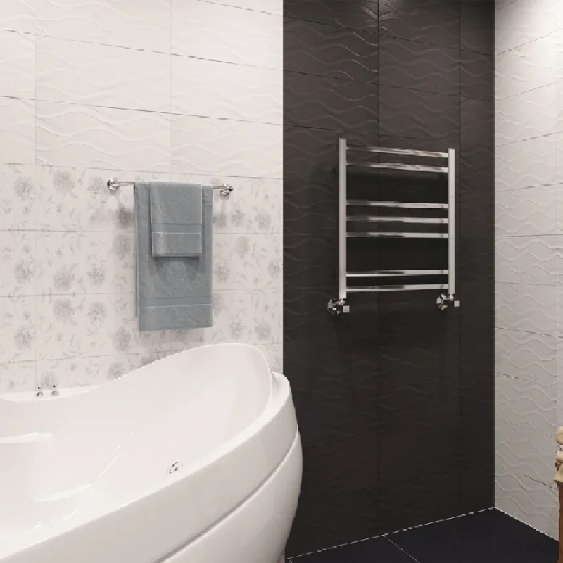 Толщина стенок труб в полотенцесушителе составляет не менее 1,5 мм, что обеспечивает десятикратный запас прочности, защиту от коррозии и абсолютную герметичность конструкции.