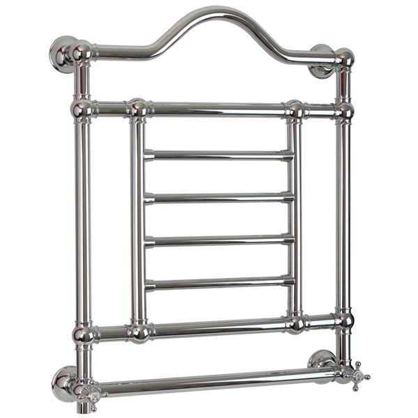 Изящная модель дополнит большинство интерьеров ванных комнат в классическом или изысканном ретро-стиле. Полотенцесушитель выполнен в форме сложной лесенки.