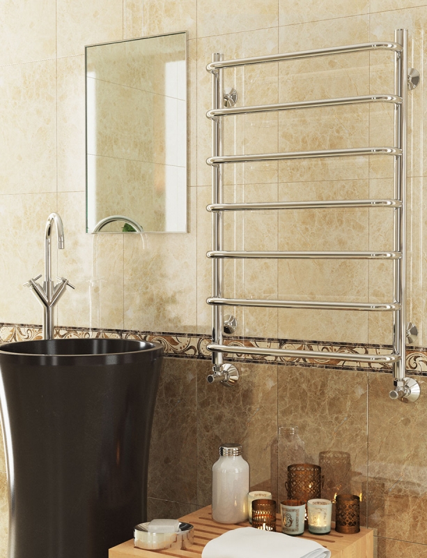 Водяной полотенцесушитель Terminus Стандарт П7 500x796 4670030725325 с нижним подключением. Для производства полотенцесушителя используется только высококачественная нержавеющая сталь марки AISI 304L с высоким содержанием легирующих элементов, Ni и Cr, это позволяет изделиям сохранять стойкость к агрессивным коррозийным средам, что существенно продлевает срок их эксплуатации. Толщина стенки используемой трубы не менее 2 мм, это обеспечивает 10-ти кратный запас прочности, труба устойчива к резким перепадам давления в системе водоснабжения!