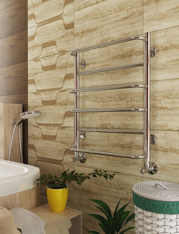 Водяной полотенцесушитель Terminus Евромикс П6 450x596 4670030723116 с нижним подключением. Для производства полотенцесушителя используется только высококачественная нержавеющая сталь марки AISI 304L с высоким содержанием легирующих элементов, Ni и Cr, это позволяет изделиям сохранять стойкость к агрессивным коррозийным средам, что существенно продлевает срок их эксплуатации. Толщина стенки используемой трубы не менее 2 мм, это обеспечивает 10-ти кратный запас прочности, труба устойчива к резким перепадам давления в системе водоснабжения!