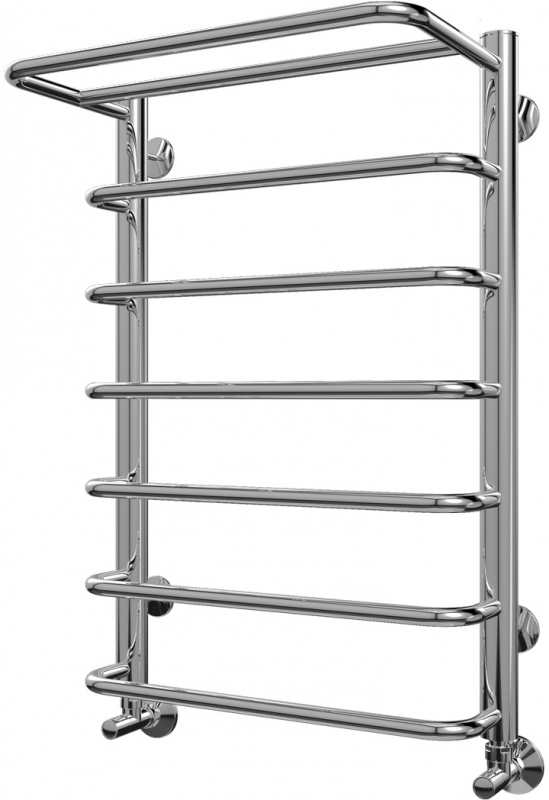 Водяной полотенцесушитель Terminus Полка П7 450x696 4670030723154 с полкой, с нижним подключением. Для производства полотенцесушителя используется только высококачественная нержавеющая сталь марки AISI 304L с высоким содержанием легирующих элементов, Ni и Cr, это позволяет изделиям сохранять стойкость к агрессивным коррозийным средам, что существенно продлевает срок их эксплуатации. Толщина стенки используемой трубы не менее 2 мм, это обеспечивает 10-ти кратный запас прочности, труба устойчива к резким перепадам давления в системе водоснабжения!