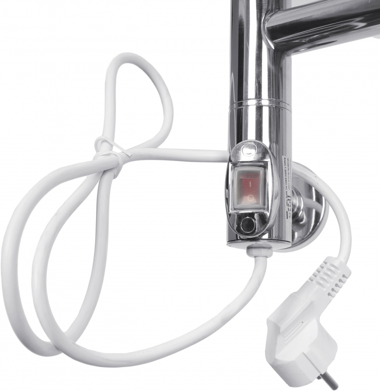 В комплекте поставки: полотенцесушитель c кнопкой включения, кабель с вилкой, крепления к стене (4 шт.), инструкция.