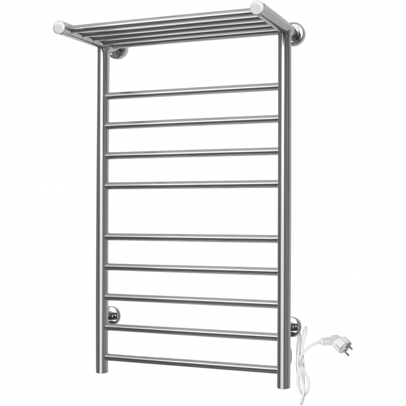 Полотенцесушитель электрический Domoterm Аврора с полкой DMT 109-Т5 П10 5090 EK R изготовлен из нержавеющей стали, обеспечивая его надежность и долговечность. Используется для просушки влажных вещей и полотенец, а также дополнительного обогрева помещения.