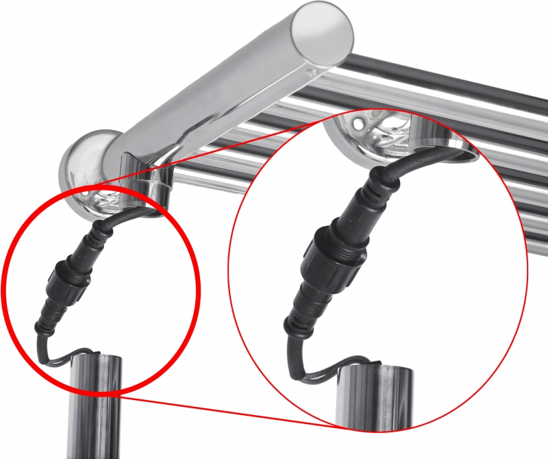 В комплекте поставки: полотенцесушитель с кнопкой включения, кабель с вилкой, крепления к стене (4 шт.), инструкция.