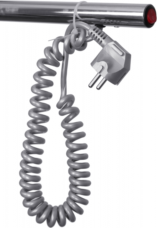 В комплекте поставки: полотенцесушитель с кнопкой включения, кабель с вилкой, крепления к стене (4 шт.), инструкция.