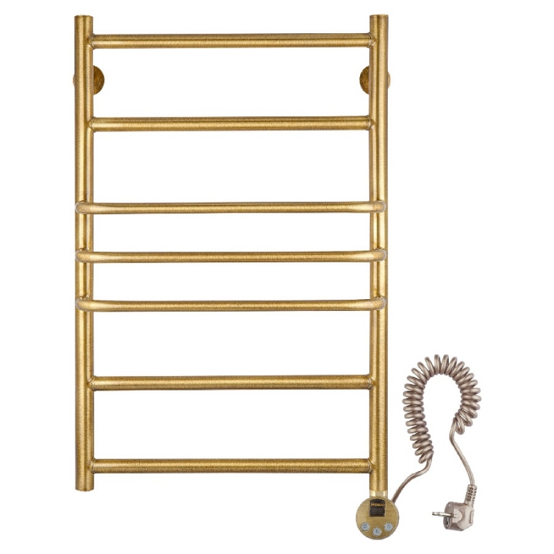 Электрический полотенцесушитель Secado Триест 50х100 э. Изготовлен из высококачественной бесшовной сантехнической латунной трубы с термостойким лаковым покрытием. Может подключаться к скрытому электрическому соединению, электропроводом с вилкой. Есть электровыключатель.Характеристики: