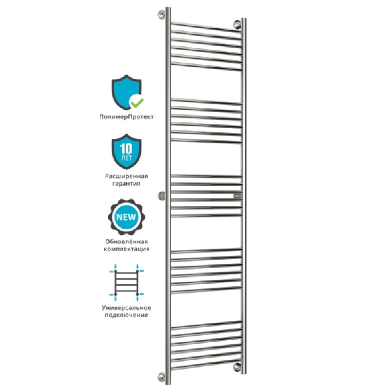 Группировка перекладин 6-6-6-6-6. Все элементы полотенцесушителя выполнены из нержавеющей стали. Выгнутый радиатор с применением технологии покрытия "ПолимерПротект".