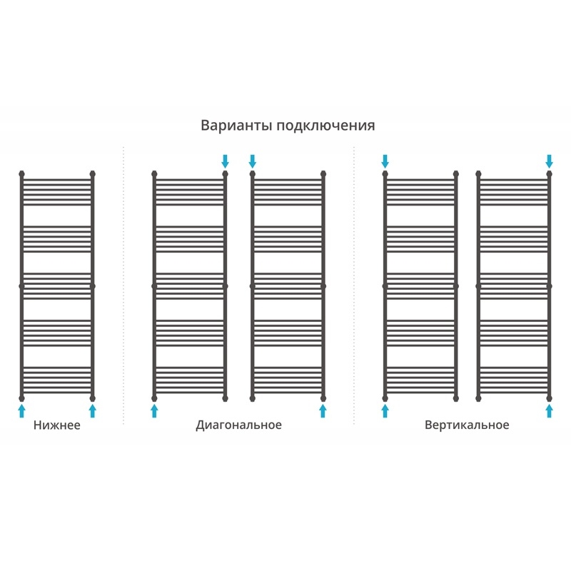 Группировка перекладин 6-6-6-6-6. Все элементы полотенцесушителя выполнены из нержавеющей стали. Выгнутый радиатор с применением технологии покрытия "ПолимерПротект".