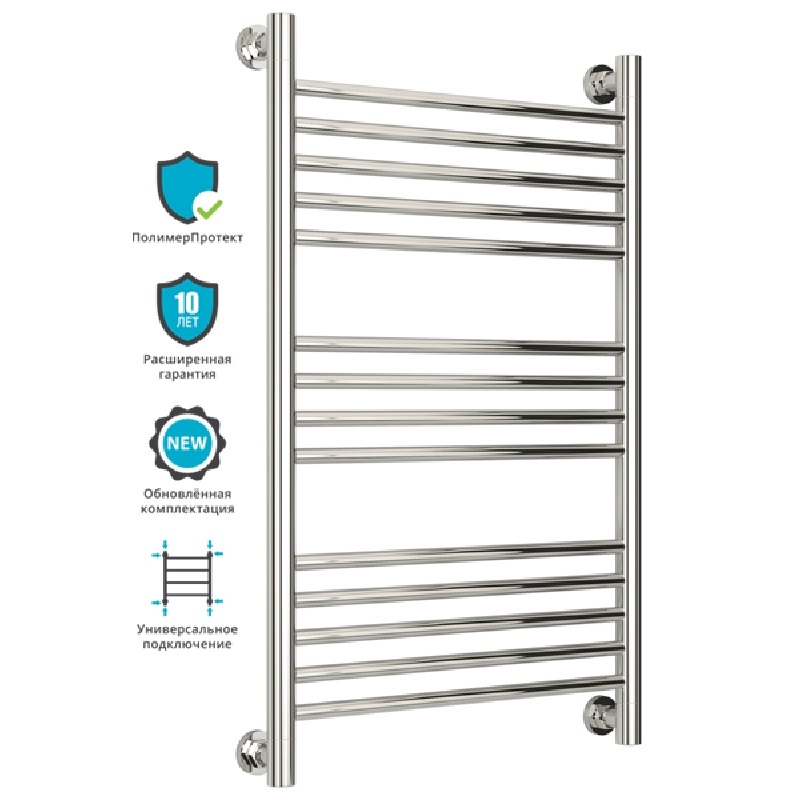 Группировка перекладин 5-4-5. Все элементы полотенцесушителя выполнены из нержавеющей стали. Выгнутый радиатор с применением технологии покрытия "ПолимерПротект".