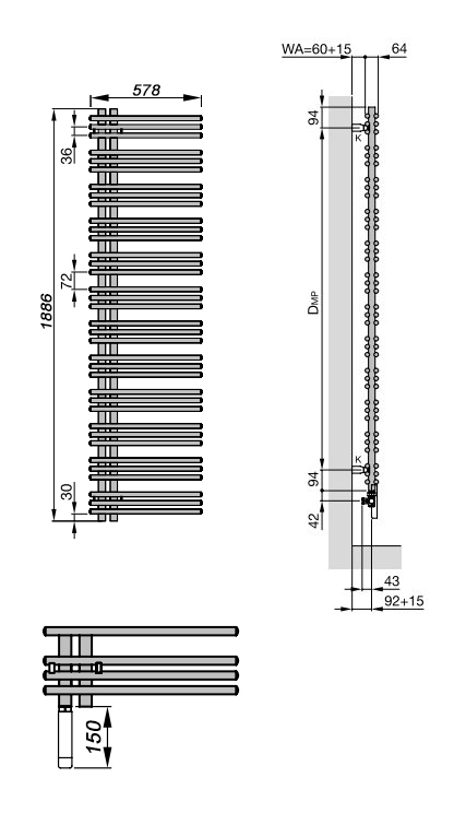 Электрический полотенцесушитель Zehnder Yucca asymmetric YADER-170-60/YD. Цвет - белый (RAL 9016). В комплект поставки входят: полотенцесушитель, электропатрон WIVAR с инфракрасным блоком дистанционного управления, декоративный кожух для электропатрона WIVAR в цвет, монтажный комплект в цвет полотенцесушителя.