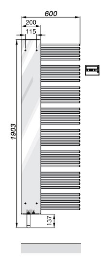 Электрический полотенцесушитель Zehnder Yucca Mirror YMECR-180-60/YD Chrome правый, декоративная крышка - зеркало. Цвет - хром (Chrome). В комплект поставки входят: полотенцесушитель, электропатрон WIVAR с инфракрасным блоком дистанционного управления, декоративный кожух для электропатрона WIVAR в цвет, зеркало, монтажный комплект в цвет полотенцесушителя.