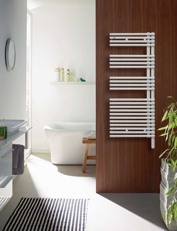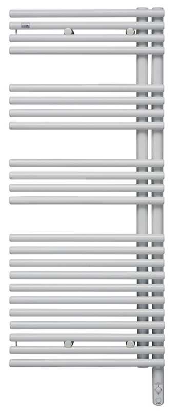Электрический полотенцесушитель Zehnder Forma Asym LFAER-120-50/DD правый - белый Ral 9016. Встроенный электропатрон DBM с ручной регулировкой белого цвета. Монтажный комплект в цвет полотенцесушителя.