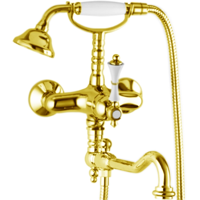 Настенный смеситель для ванны Cezares Margot MARGOT-VDFM2-03/24-Bi/A однорычажный, с аэратором, с душевым гарнитуром, монтируемый в два отверстия.