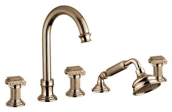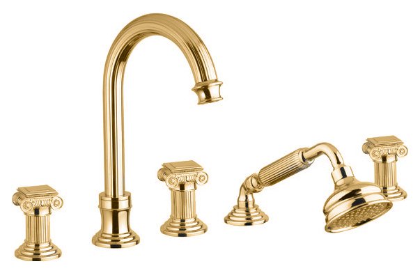 Смеситель на борт ванны Cezares Olimp BVD-03/24-O. Сочетает в себе инновационные технологии и продуманный до мелочей дизайн. Смеситель отличается изящным исполнением ручек и корпуса, напоминающих элементы античных колонн с плавными изгибами и скульптурными спиралями.