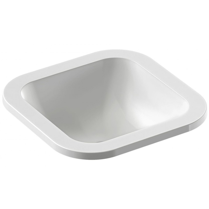 Раковина Jacob Delafon Vox 39 EYF102-00 квадратной формы, с переливным отверстием в передней части.