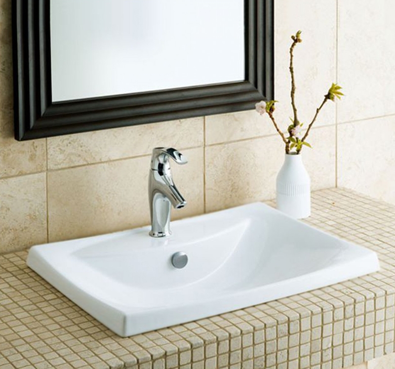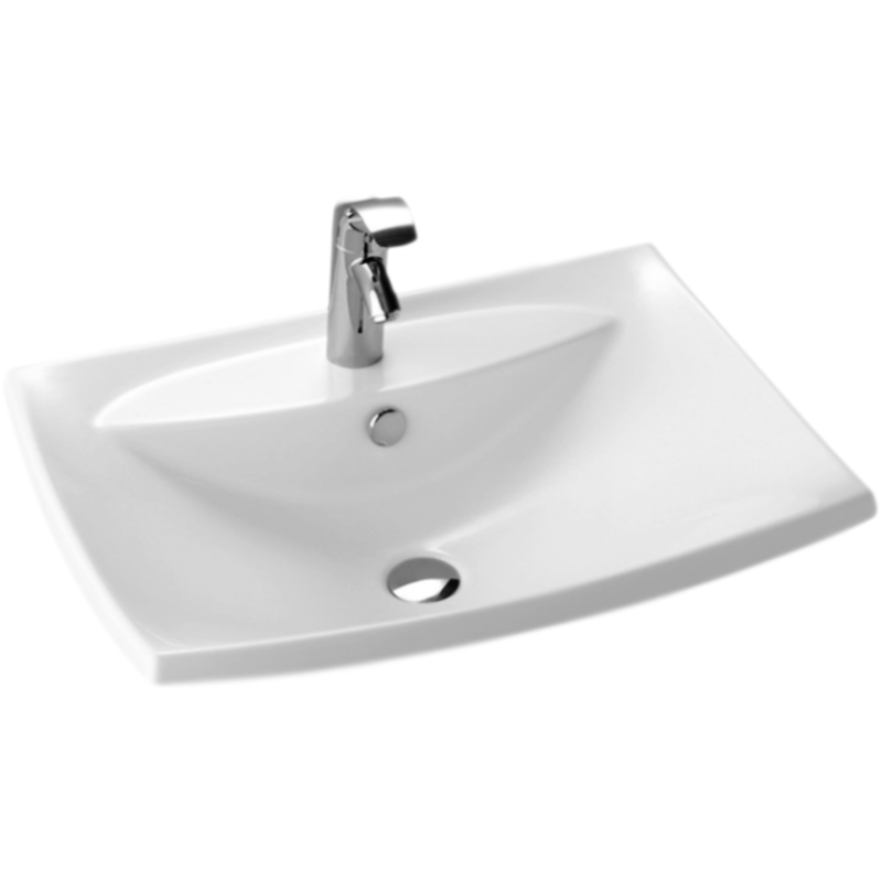 Прямоугольная раковина Jacob Delafon Escale 60 E1289-00 с переливом, встраиваемая сверху, с симметричными формами, вдохновленными восточным искусством.
