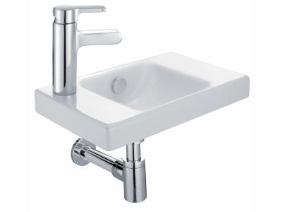 Полукруглая раковина Jacob Delafon Odeon Up 40 E4759G-00 с переливом, смеситель с левой стороны.