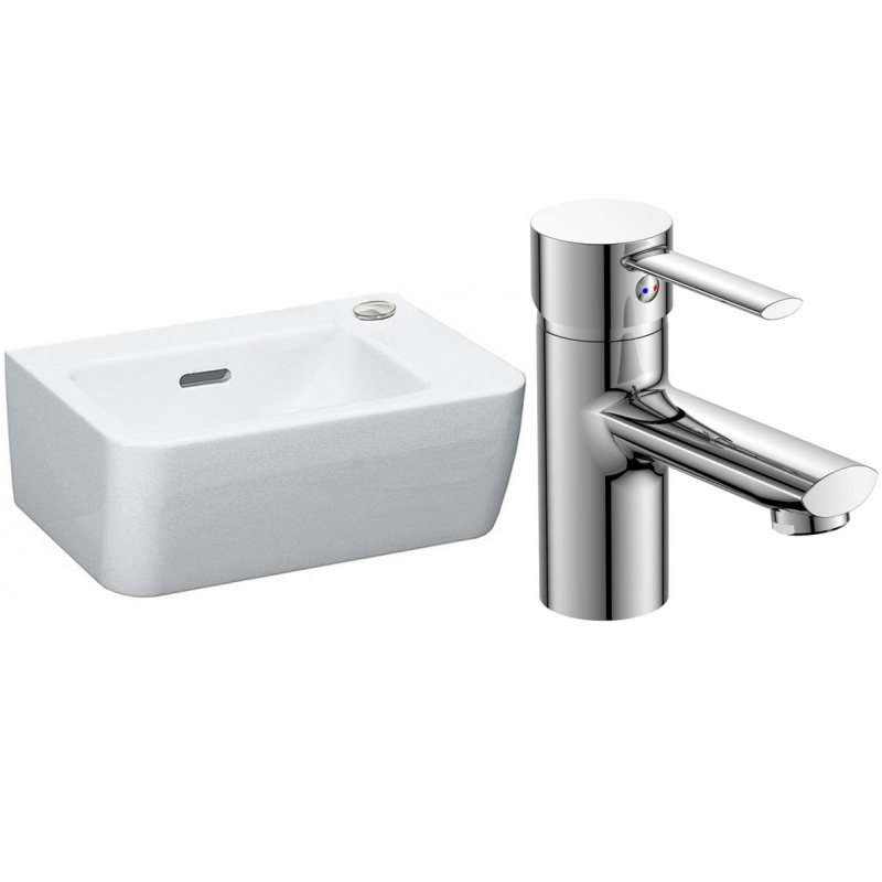 Раковина со смесителем идеально подходит для маленьких ванных комнат и санузлов в современном стиле.