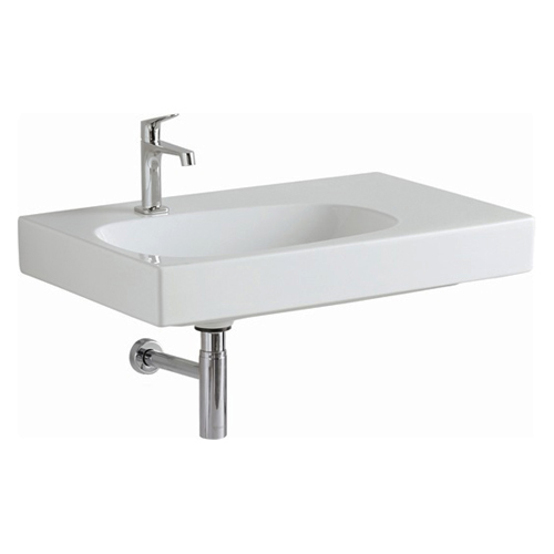Раковина Geberit (Keramag) Citterio 123575000. Монтаж подвесной. С белой керамической крышкой сливного клапана. С 1-м отверстием для смесителя, расположенным слева. С полочкой справа. Вес 20,5 кг. Цвет белый. Ширина 75 см. Глубина 50 см. Высота 16 см. Форма прямоугольная. Материал керамический фаянс.