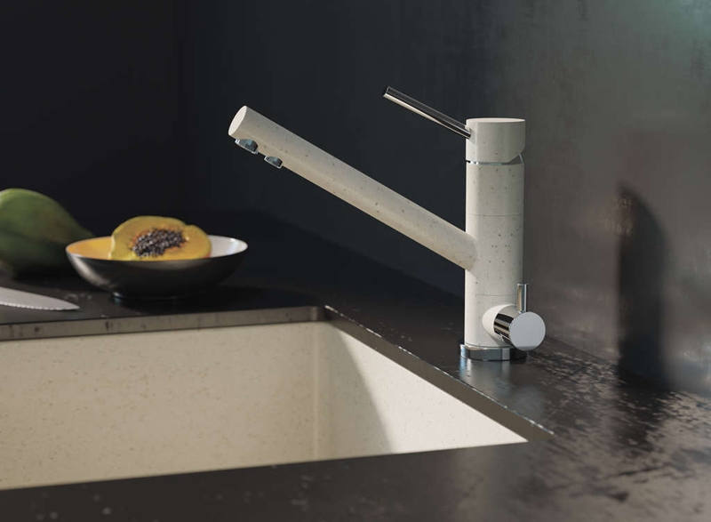 Стильный и удобный в использовании смеситель подходит для большинства кухонных интерьеров в современном стиле.