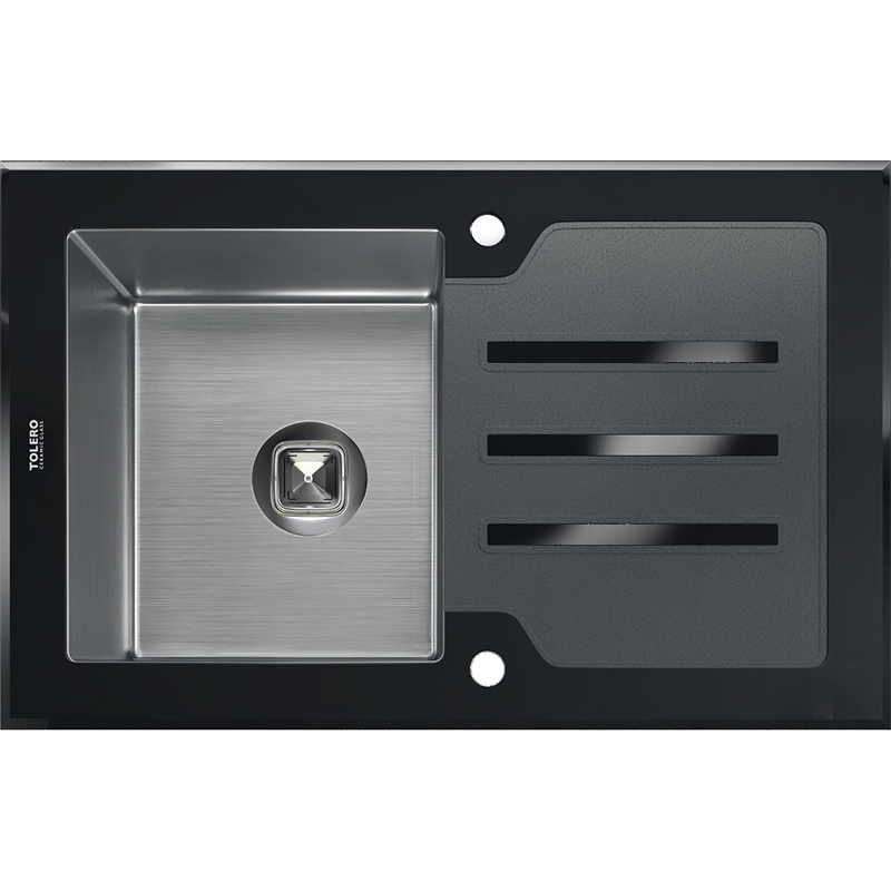 Прямоугольная кухонная мойка Tolero Ceramic Glas TG-780 50x78. Рабочая поверхность из керамического стекла. Чаша из нержавеющей стали выдерживает высокие механические нагрузки и химические воздействия. Внешний корпус обработан каучуковым составом для шумоизоляции.