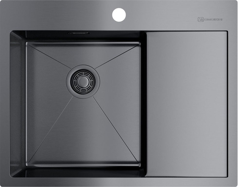 Кухонная мойка Omoikiri Akisame 65 L GM 4973097 с переливом и крылом. Цвет: вороненая сталь.