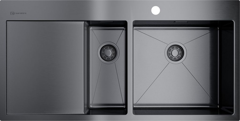 Кухонная мойка Omoikiri Akisame 100 R GM 4973104 с дополнительной чашей, крылом и переливом. Цвет: вороненая сталь.