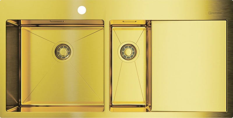 Кухонная мойка Omoikiri Akisame 100 L LG 4973089 с дополнительной чашей, крылом и переливом. Цвет: светлое золото.