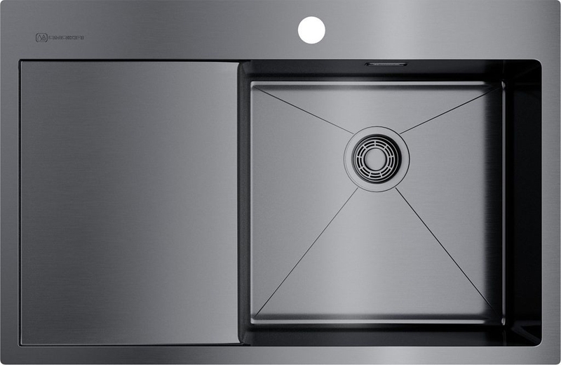 Кухонная мойка Omoikiri Akisame 78 R GM 4973100 с крылом и переливом. Цвет: вороненая сталь.