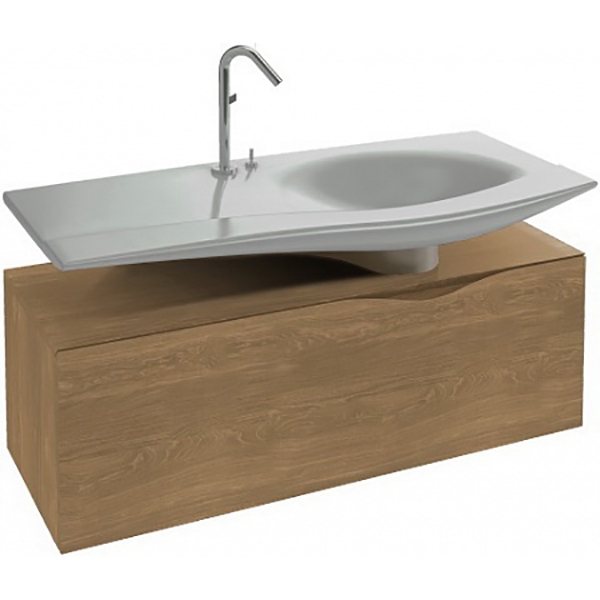Подвесная тумба под раковину Jacob Delafon Stillness 120 EB2001-G1C со смещенным центром столещницы.
