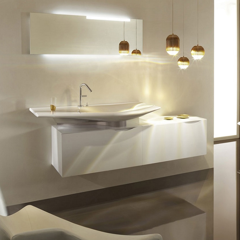 Тумба оснащена механизмами плавного и бесшумного закрытия, направляющими скрытого монтажа.