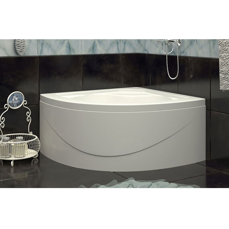 - высокий душевой поддон из санитарного акрила белого цвета. Материал прочный, долговечный, а также легок в санитарной обработке. Поддон оснащен антискользящим покрытием, дно поддона усилено плитой ДСП, а металлический каркас имеет регулируемые опоры. Имеет универсальное расположение. Форма в четверть круга прекрасно впишется в традиционный интерьер душевой комнаты. Подходит для душевой кабины размером: 100х100 см. Комплектуется сифоном для душевого ограждения, поэтому поддон сразу после установки можно активно использовать для принятия душа.