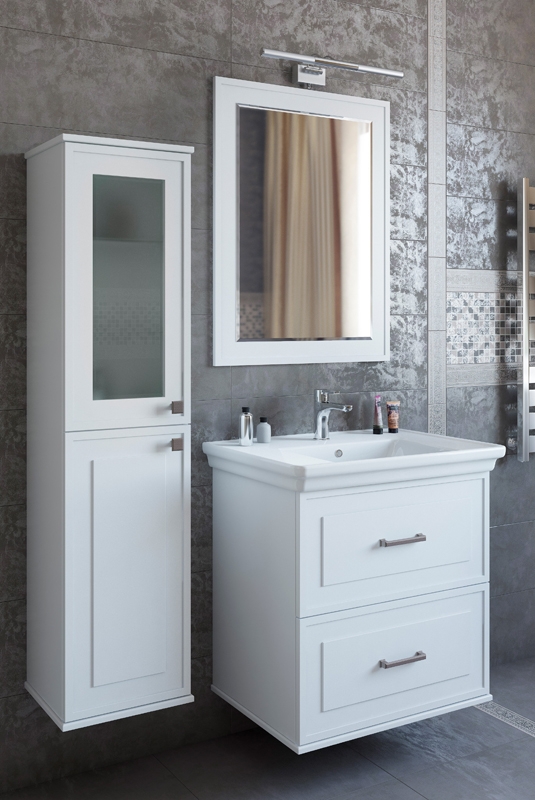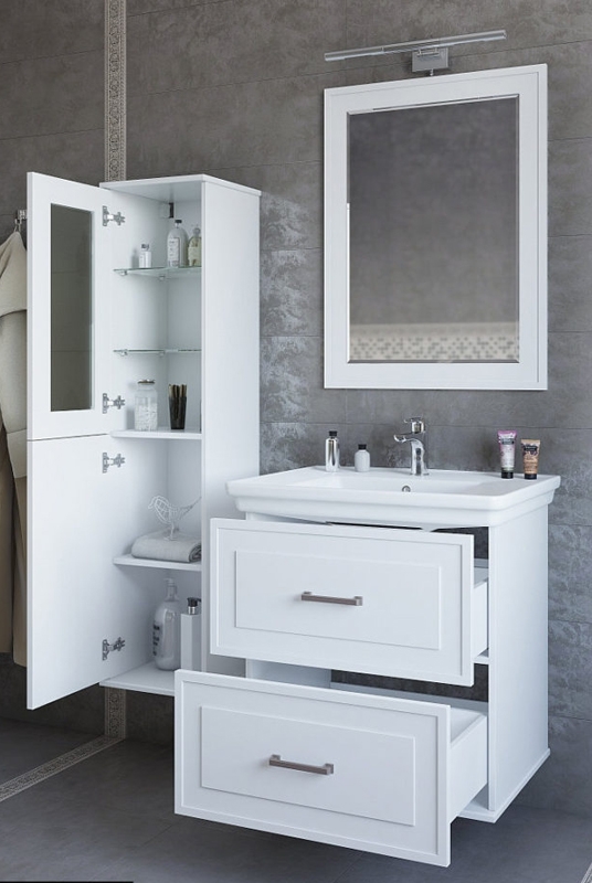 Шкаф-пенал Sanflor Модена 34 L С04613 белого цвета, с распашными дверками (петли слева). Для использования в ванных комнатах с повышенной влажностью.