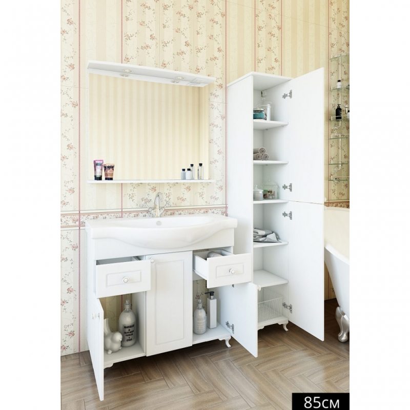 Тумба с раковиной Sanflor Софи 85 С0002224 напольная изготовлена из качественных материалов в современном элегантном стиле. Поможет в создании ультрамодной ванной комнаты с сохранением актуальной функциональности. Предназначена для использования в условиях повышенной влажности.