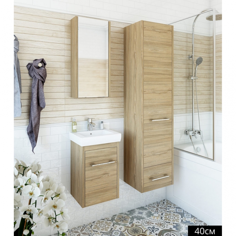 Подвесной шкаф-пенал Sanflor Ларго 40 R Н0000000519 Швейцарский вяз, в скандинавский стиле, на четырех хромированных ножках, с распашной дверцей (петли справа) и с выдвижными ящиками.