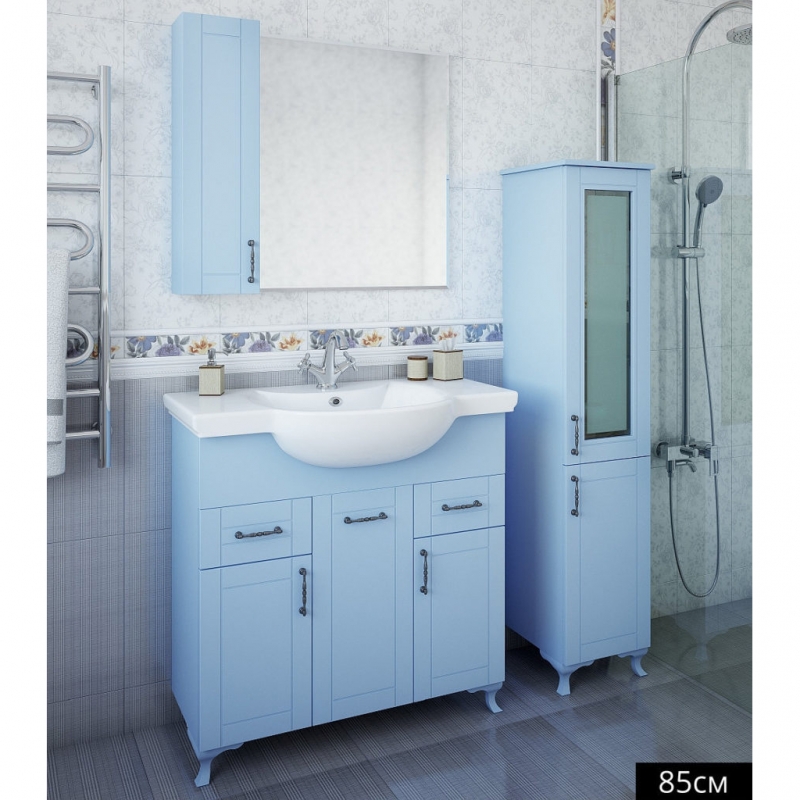 Напольный шкаф-пенал Sanflor Глория R 32 С000005720 голубого цвета, с двумя отделениями, с распашными дверцами (петли справа).