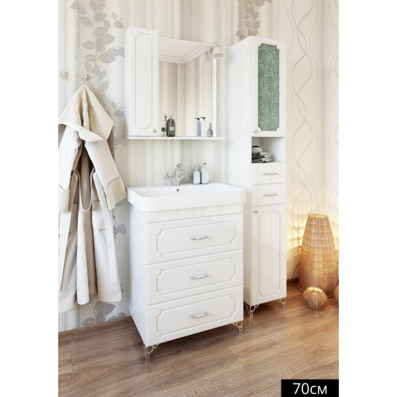 Шкаф-пенал Sanflor Ксения 32 R Н0000000120 белого цвета, с фрезеровкой, с двумя фигурными ножками, с распашными дверцами (петли справа), с открытой нишей, с выдвижными ящиками.