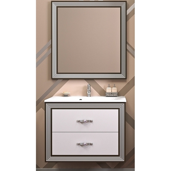 Комплект мебели для ванной Opadiris Карат 80. Цвет: белый с серебряной патиной.