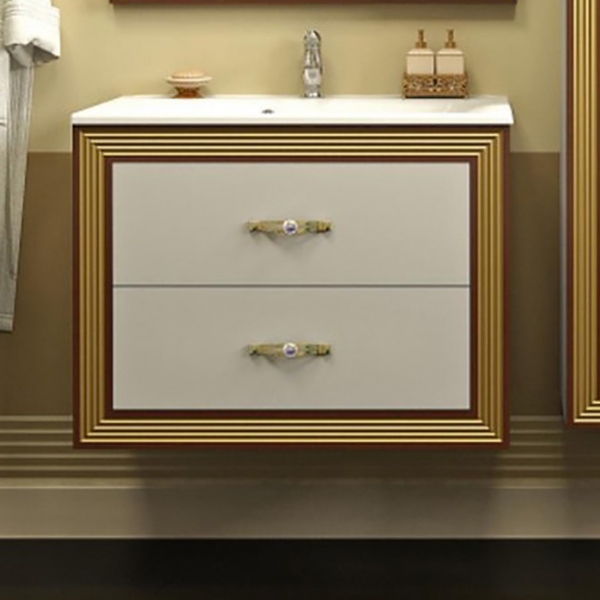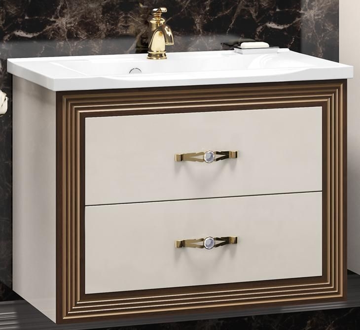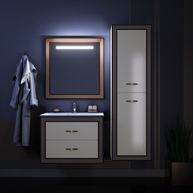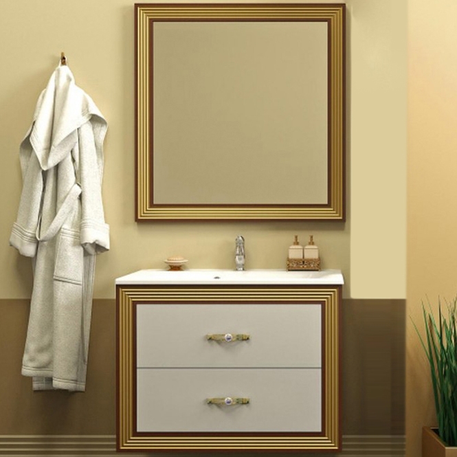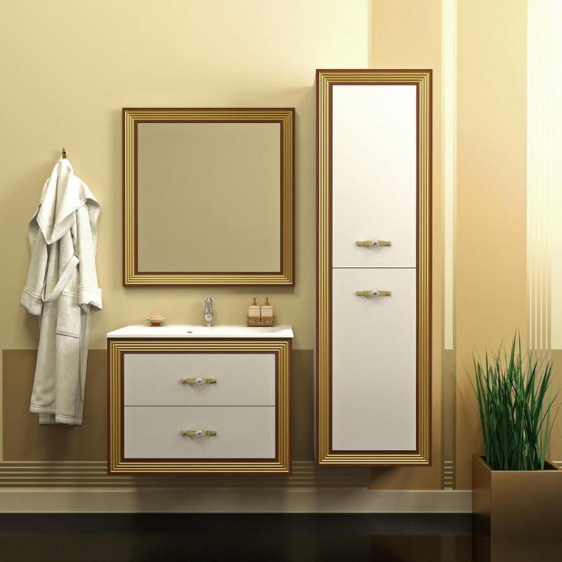 Комплект мебели для ванной Opadiris Карат 80. Цвет: белый с золотой патиной.