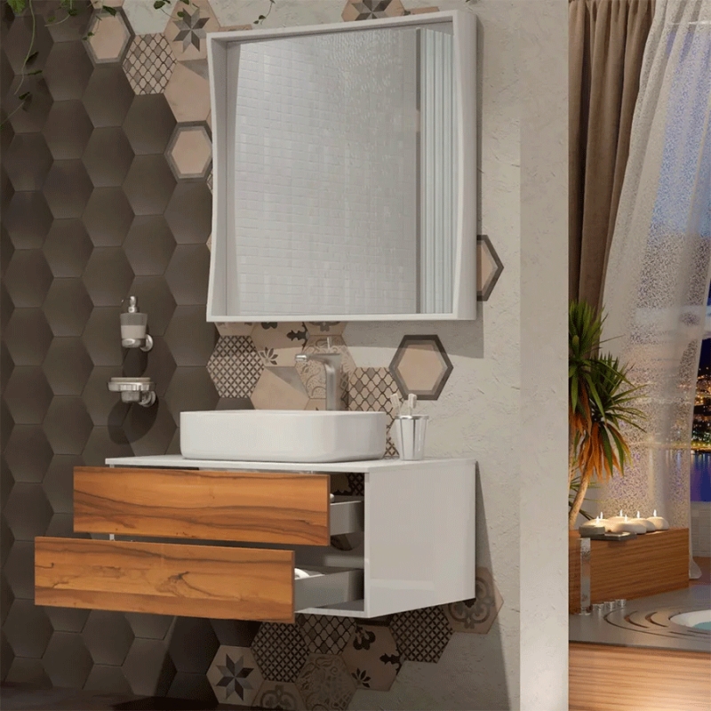 Подвесная тумба под раковину Opadiris Дольче 80 00-00000177 с двумя выдвижными ящиками. Цвет: белый, светлое дерево.