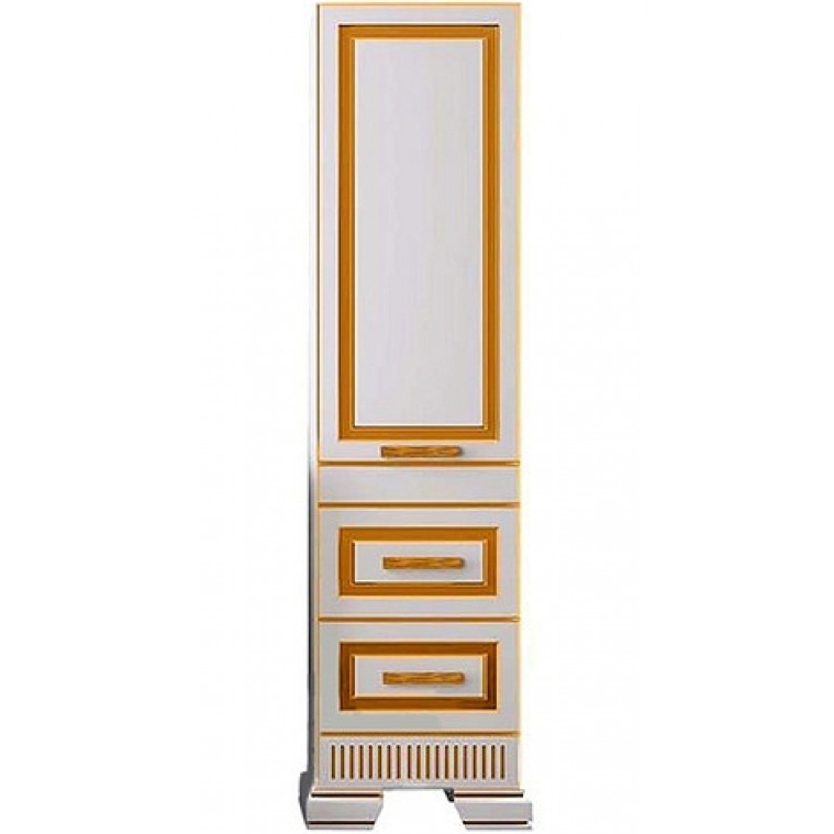 Шкаф пенал Opadiris Оникс 50 R Z0000005742. Цвет: белый глянцевый с золотой патиной.