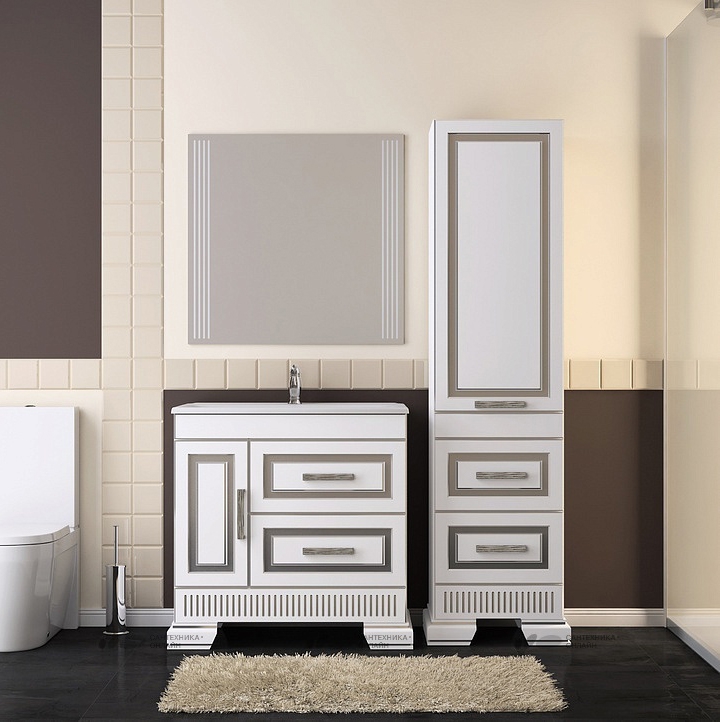 Станет шикарным элементом в интерьере ванной комнаты. Превосходно подходит как для классического, так и для современного стиля. Роскошный фасад выполнен с глубокой фрезеровкой с патиной, а также дополнен удобными ручками-скобами.