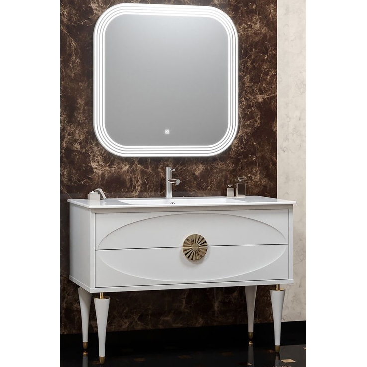 Комплект мебели для ванной Opadiris Ибица 120. Цвет: белый глянец/золото.