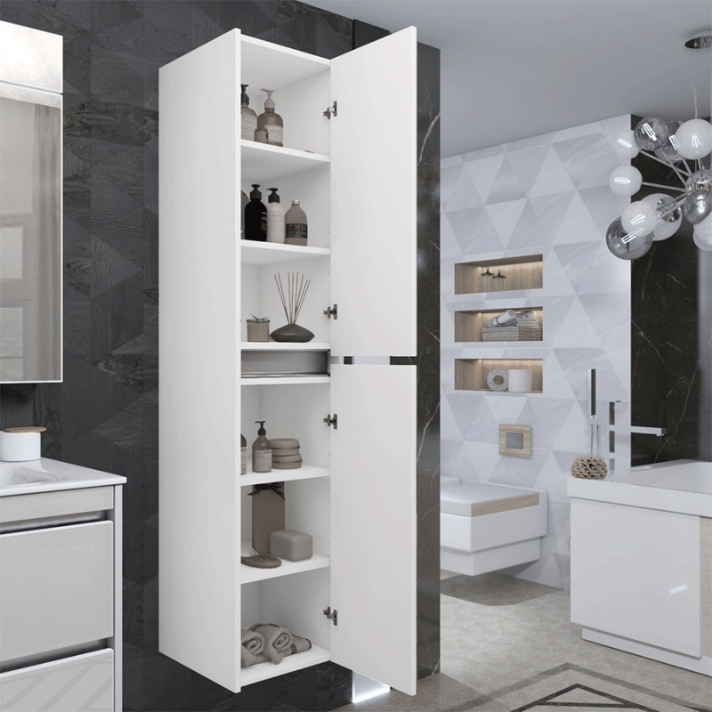 Подвесной универсальный шкаф пенал Opadiris Фреш 35 Z0000014801 с двумя распашными дверцами. Цвет: белый глянец.