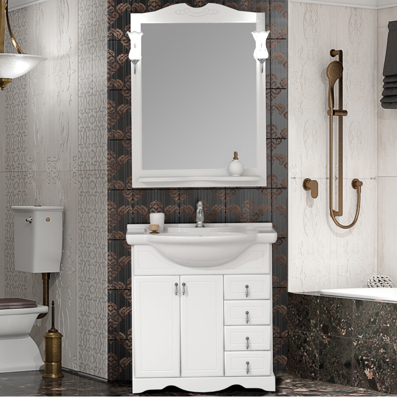 В комплекте поставки: тумба, раковина (фаянс), зеркало, светильник (2 шт.).